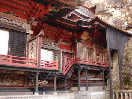 右の写真は建物正面中央の左右上方にある柱で、龍が彫られていて、