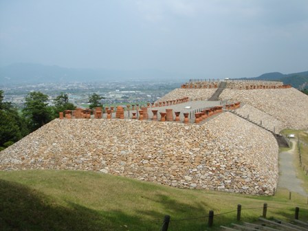 現在のものは当時と同じように復元・修復されたものだが、築造された場所がかなり高所で、古墳の上からは街全体が見渡せる。竪穴式石室は日本最大級で、発見された当時は既に荒された後、金銀財宝?などは無かったそうです。主は埋葬されていたみたいだけど。すごい景色良かった!!石室があった場所は分かるように印がついていて、古墳館では石室付近が実物大に再現されたものが副葬品と共に展示してあり、なかなか面白かったですよ。